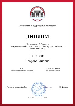 Межрегиональная олимпиада по английскому языку «Молодежь Великобритании»
