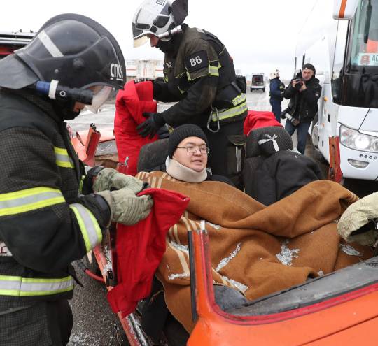 В первую очередь сотрудники приступили к деблокированию пострадавших и оказанию медицинской помощи. Параллельно велась работа по ликвидации возгорания топлива и стабилизации опрокинувшегося автомобиля. Заключительным этапом учения стала деятельность дорожных служб по восстановлению поврежденного участка трассы.