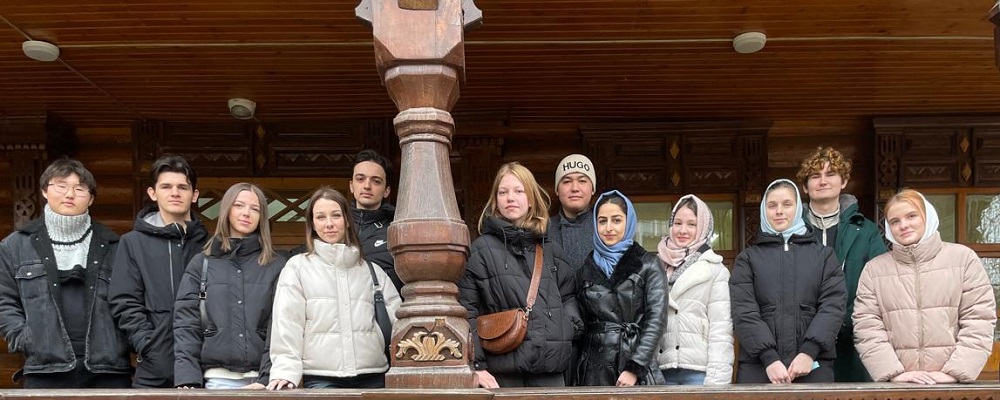 В ходе экскурсии студенты сумели ознакомиться с планировкой дома, рассмотреть детали террасы, деревянную резьбу наличников, карнизов, пилястр и других архитектурных элементов здания. Особенное впечатление на них произвели резной треугольный фронтон, богатые резные «полотенца», спускающиеся от причелин.