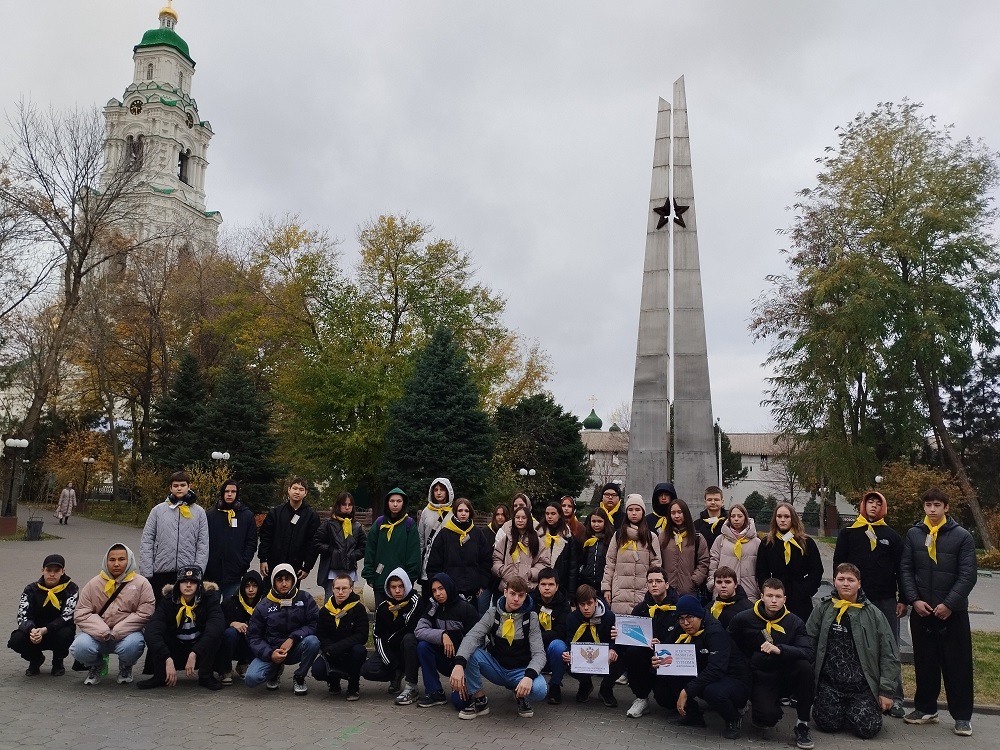 В рамках военно-патриотической программы студенты совершили три обзорные автобусные экскурсии, посвященные прошлому и настоящему города. Старт был дан на бульваре Победы, открытом в честь 40-летия безоговорочной капитуляции фашистской Германии. Обучающимся рассказали об истории расположенных здесь памятников: мемориала погибшим кораблям; стелы «Героям Советского Союза», на гранитной плите которой увековечены имена астраханцев, героически погибших во время войны; бронзового бюста Герою Советского Союза, заслуженному военному летчику Николаю Скоморохову, а также легендарного танка Т-34, установленного в память о боях Великой Отечественной войны. Далее молодые люди посетили Братский сад и у Вечного огня почтили память погибших минутой молчания.