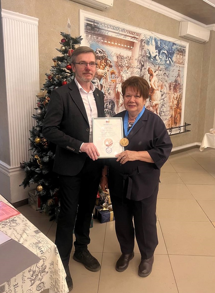 Одним из ярких моментов встречи стало вручение доценту-консультанту кафедры дизайна и реставрации АГАСУ Татьяне Толпинской медали им. И. В. Жолтовского «За выдающийся вклад в архитектурное образование». Эта награда служит признанием многолетней работы Татьяны Павловны и ее заслуг в сфере подготовки новых поколений профессионалов.