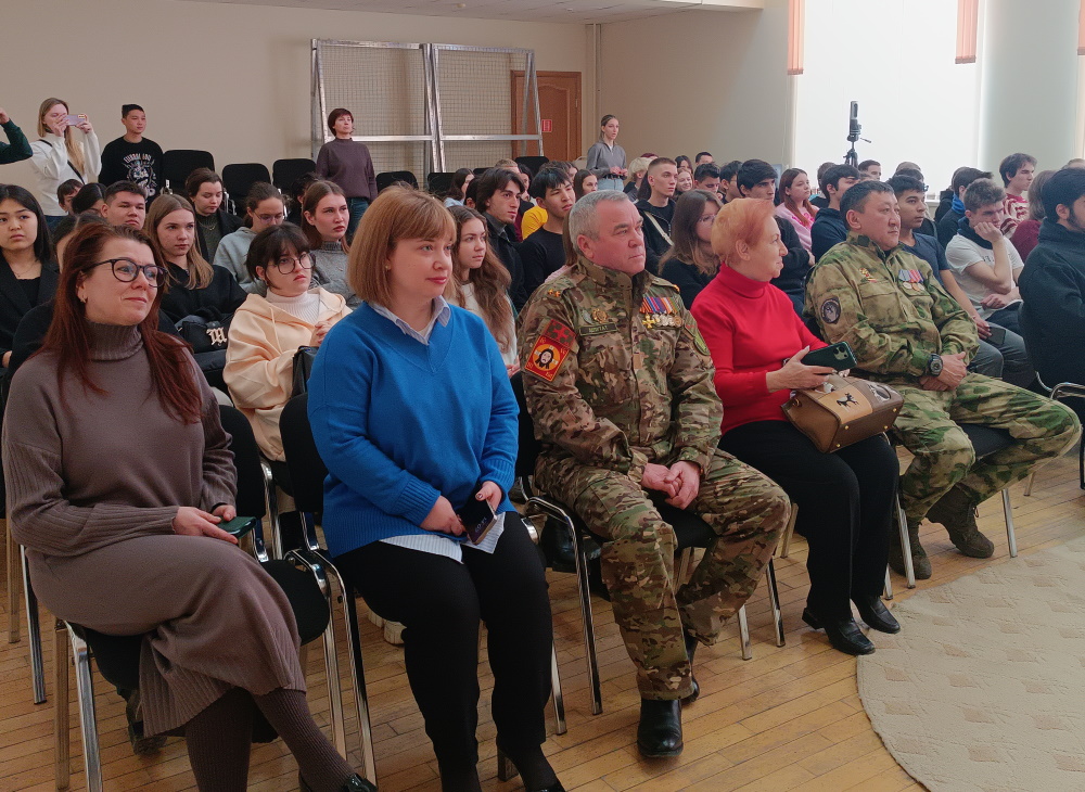 Студенты смогли познакомиться с подполковником милиции в отставке, председателем регионального отделения Общероссийской общественно-государственной организации «Добровольное общество содействия армии, авиации и флоту России», участником контртеррористических операций на Северном Кавказе и СВО Василием Григорьевым. Студенты задавали вопросы о его жизни после боевых действий.