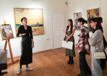 Экскурсию по выставке провела заведующая Домом-музеем Юлия Беспалова. Ее живой и увлекательный рассказ заинтересовал студентов. Архитекторы узнали, что в апреле состоится презентация картины «Венера», которая займет место холста «Портрет Ирины К.».