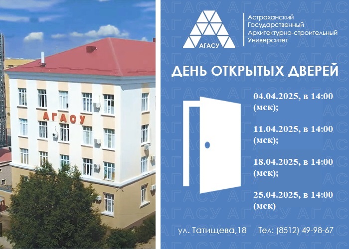 Астраханский государственный архитектурно-строительный университет приглашает иностранных абитуриентов и их родителей на дни открытых дверей в формате онлайн.