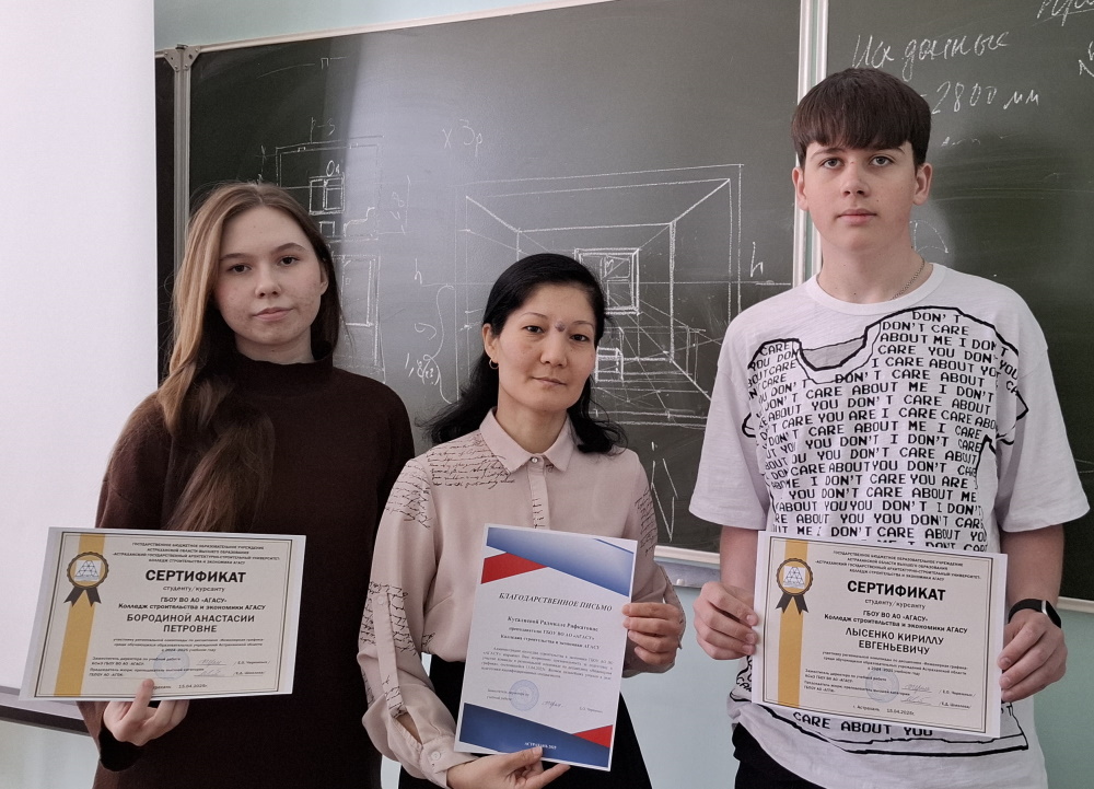 15 апреля 2025 г. в колледже строительства и экономики АГАСУ состоялась региональная олимпиада по дисциплине «Инженерная графика» среди студентов средних специальных учебных заведений. Мероприятие организовали преподаватели Радмилла Кусалиева, Татьяна Сорокина и Марина Храмова. Радмилла Рифкатовна выступила в качестве наставника команды нашего колледжа, в состав которой вошли второкурсники Кирилл Лысенко, Ильнар Султанов и Анастасия Бородина.