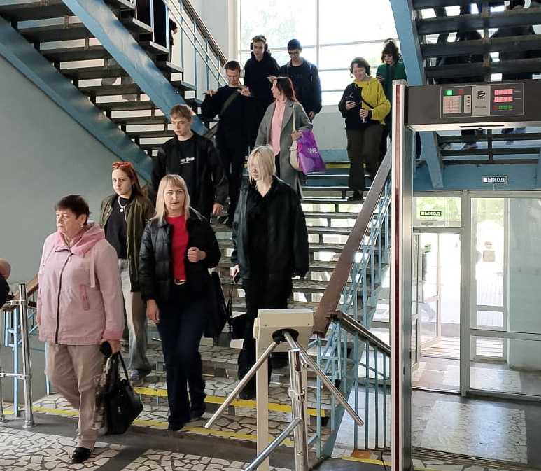 Преподаватели, студенты и персонал организованно покинули здания учебных корпусов и общежитий, собрались в соответствии с установленным временем и на определенном расстоянии.