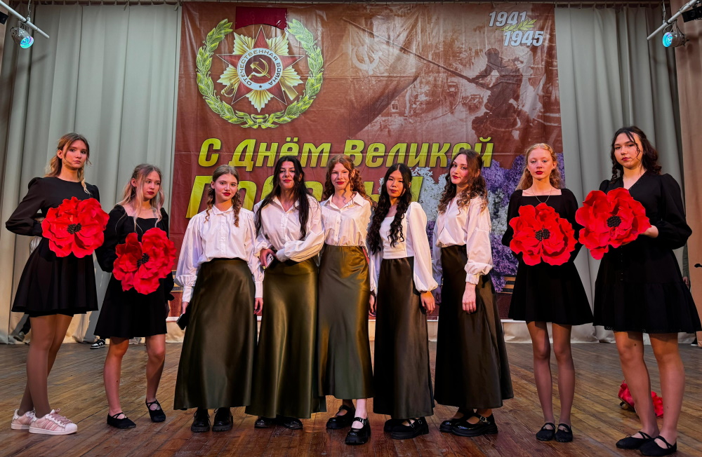 Студенты групп А-11 и А-12 подготовили танцевальные номера под музыкальные композиции «Маки» и «На позицию девушка провожала бойца», а Алиса Коротких представила сольный танец, в котором передала всю горечь потерь и страданий советского народа.