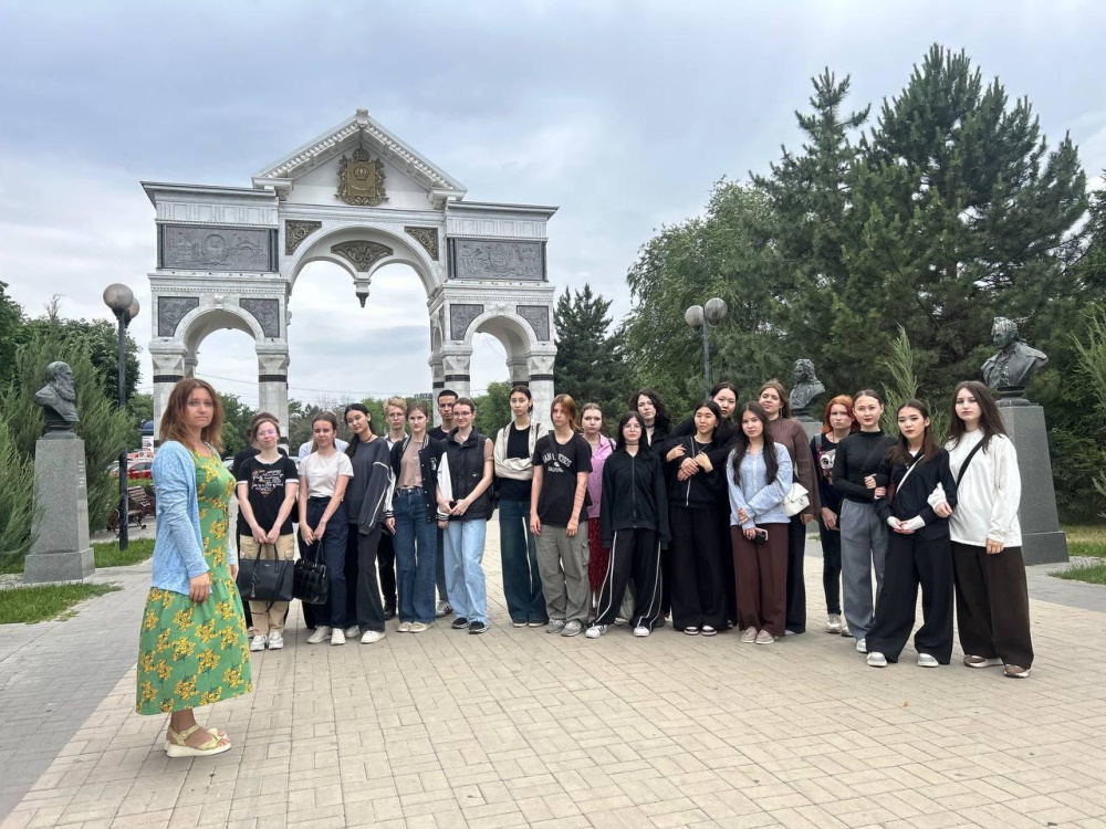 Студенты познакомились с историей памятника императору Петру I, барельефами Триумфальной арки и фонтаном с изображением гербов районов, посетили Аллею Славы земли Астраханской и узнали о выдающихся личностях, которые внесли вклад в развитие региона.