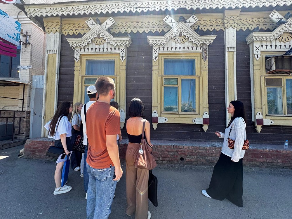 В начале июля 2025 г. студенты архитектурного факультета АГАСУ стали участниками открытого урока на тему «Уникальность деревянного зодчества архитектуры Астрахани». В рамках занятия под руководством старшего преподавателя кафедры архитектуры и градостроительства Анны Рукавишниковой состоялась экскурсия по старейшим улицам города.