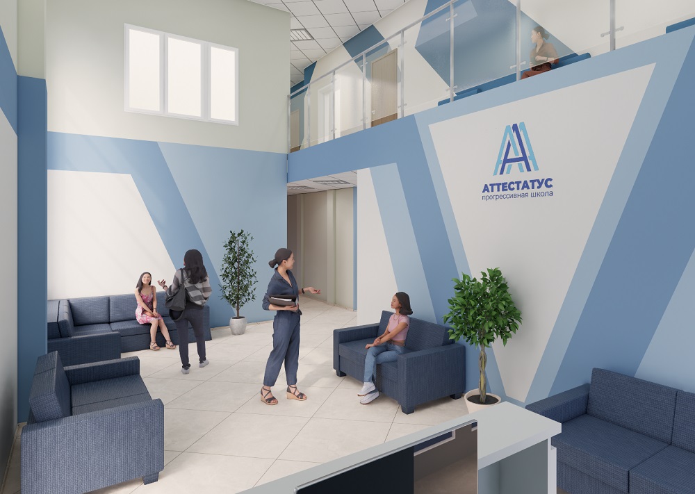 Студентки архитектурного факультета АГАСУ Алина Мамедова и Любовь Алексеева под руководством заведующей кафедрой дизайна и реставрации Юлии Мамаевой создали дизайн-проект интерьера прогрессивной школы «Аттестатус».