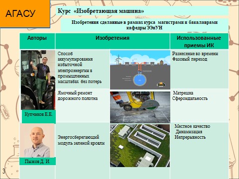 2) организация курса «Изобретающая машина» для магистрантов и бакалавров;