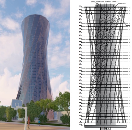 Проект Анастасии «36-этажный многофункциональный гостинично-офисный центр с подземной парковкой в г. Москве» был выполнен под руководством заведующей кафедрой промышленного и гражданского строительства Ольги Завьяловой, которая также выступила консультантом расчетного раздела. Консультантами по архитектуре, BIM-технологиям, технологии и организации строительства соответственно стали преподаватели Ксения Прошунина, Владислав Куликов и Георгий Сучилин. В выпускной квалификационной работе была воплощена гиперболоидная сетчатая конструкция. Прототипами и вдохновителями явились Шуховская башня на Шаболовке и Кантонская телебашня в Гуанчжоу.