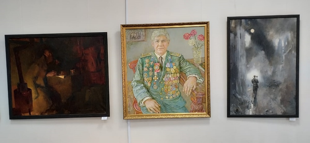 Экспозиция, разместившаяся в выставочном зале учреждения, включает более 50 произведений мастеров разных поколений. Посетители могут увидеть натюрморт участника взятия Берлина Николая Заварина «Светлой памяти», работы его учеников и преемников Александра Петрова, Михаила, Сергея и Надежды Приказчиковых, портреты ветеранов войны, написанные Юрием Лебедевым, а также картины Зохры Алиевой и Фахрикамал Махмудовой, Рафика Гасанова, Геннадия Гришанова, Александра Колючкина, Дмитрия Королева и Николая Снытко.