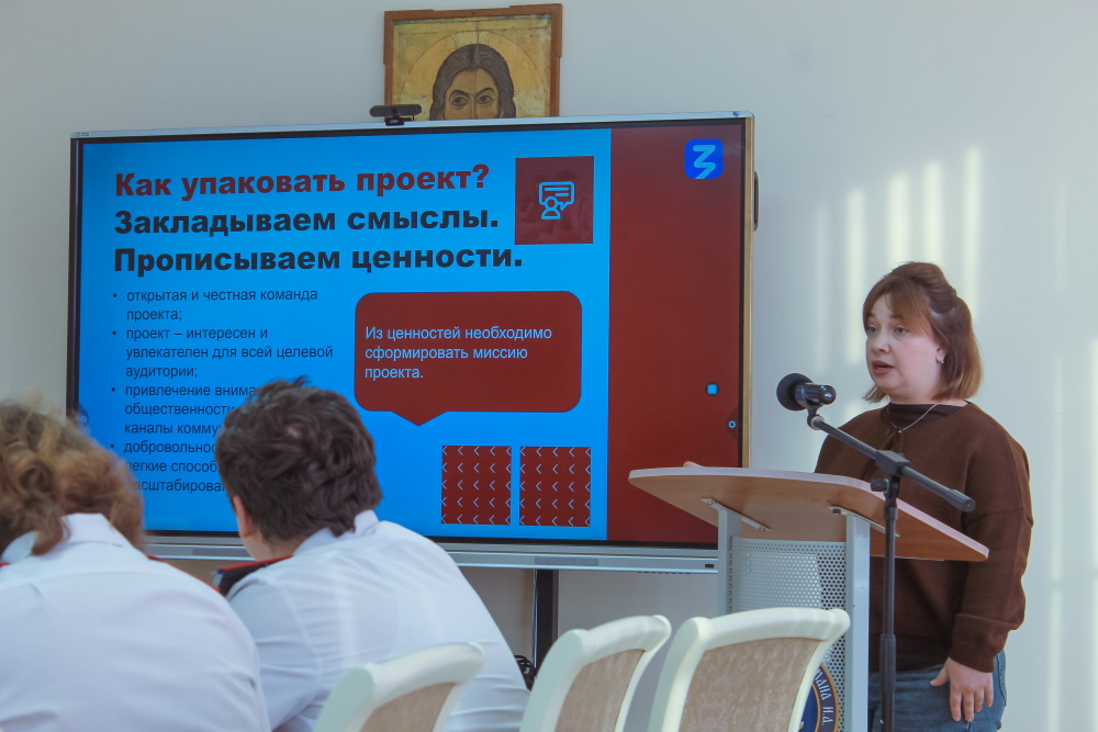 Кроме того, в рамках Рождественских образовательных чтений на базе Казачьего кадетского корпуса им. атамана И. А. Бирюкова состоялся круглый стол «Нравственные основы непрерывного казачьего воспитания в системе образования». В качестве спикера выступила проректор по воспитательной работе Наталья Дейнега, которая прочитала лекцию на тему «Как создать свой первый социальный проект и выиграть грант на его реализацию».