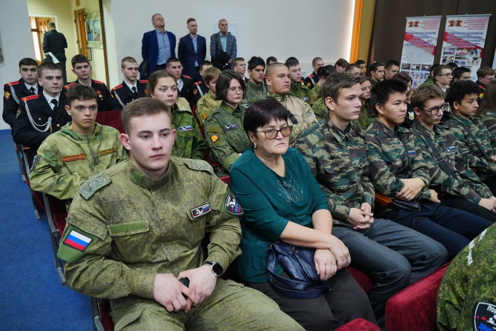 Церемония продолжилась в Астраханском суворовском военном училище МВД России, где состоялось подведение итогов деятельности поисковых объединений региона. В числе почетных гостей присутствовали: депутат Госдумы РФ Леонид Огуль, заместитель председателя Думы Астраханской области Олег Петелин, заместитель председателя регионального правительства Владимир Осташкевич, уполномоченный по правам человека в Астраханской области Андрей Спицин, заместитель главы города Астрахани Эльдар Хуснутдинов, первый заместитель руководителя агентства по делам молодежи АО Екатерина Нагорная и другие.