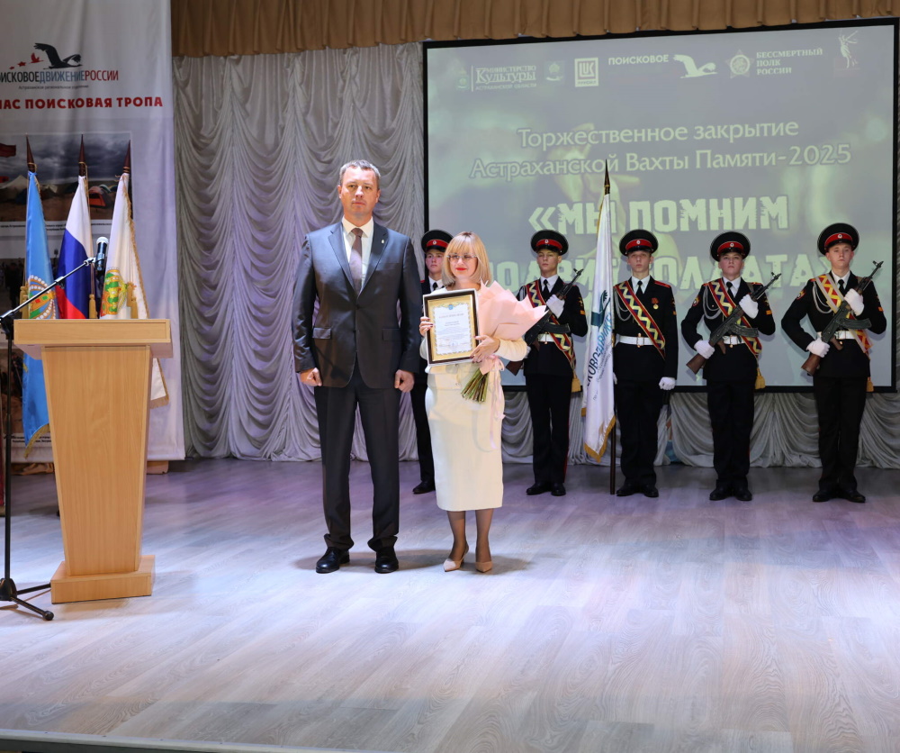 25 ноября 2025 г. поисковики Астраханского государственного архитектурно-строительного университета приняли участие в торжественном закрытии региональной «Вахты Памяти – 2025» под названием «Мы помним подвиг солдата».