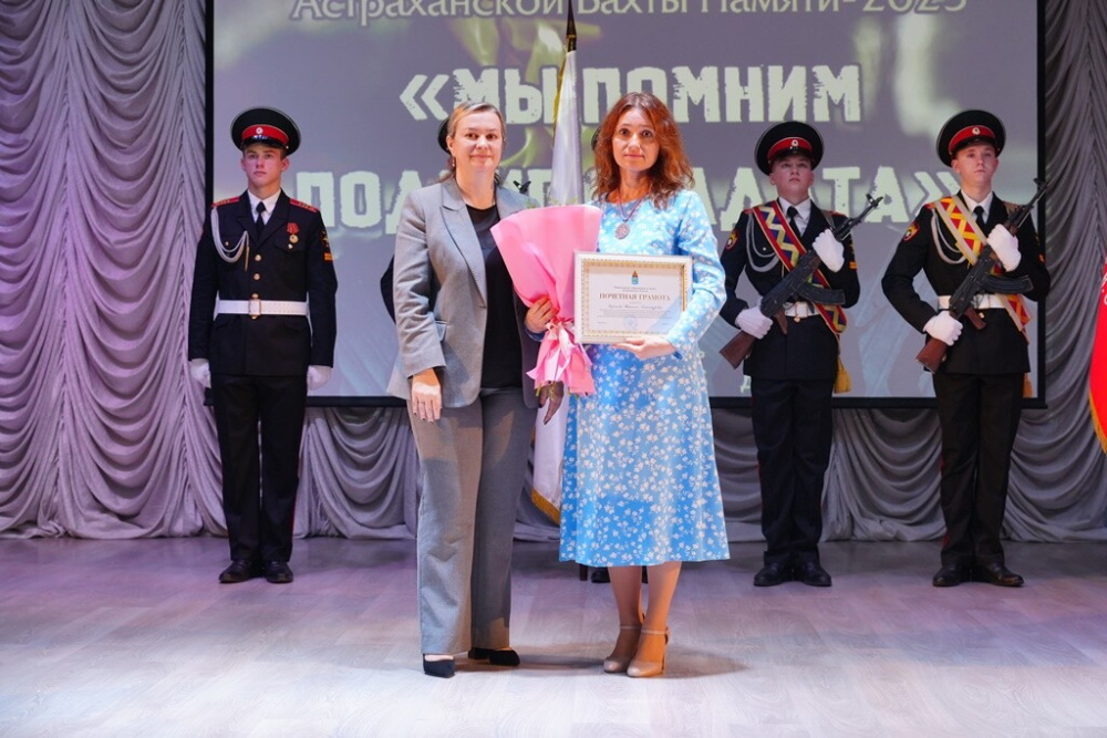 В ходе мероприятия были вручены награды за вклад в патриотическое воспитание и поисковую работу. Благодарственным письмом губернатора Астраханской области награждена преподаватель истории колледжа жилищно-коммунального хозяйства АГАСУ Дарья Коршунова. Преподаватель колледжа строительства и экономики Наталья Хорошева была удостоена почетной грамоты министерства образования и науки АО. Кроме того, музейно-поисковому объединению «Дельта» вручили благодарственное письмо от главы МО «Город Астрахань».
