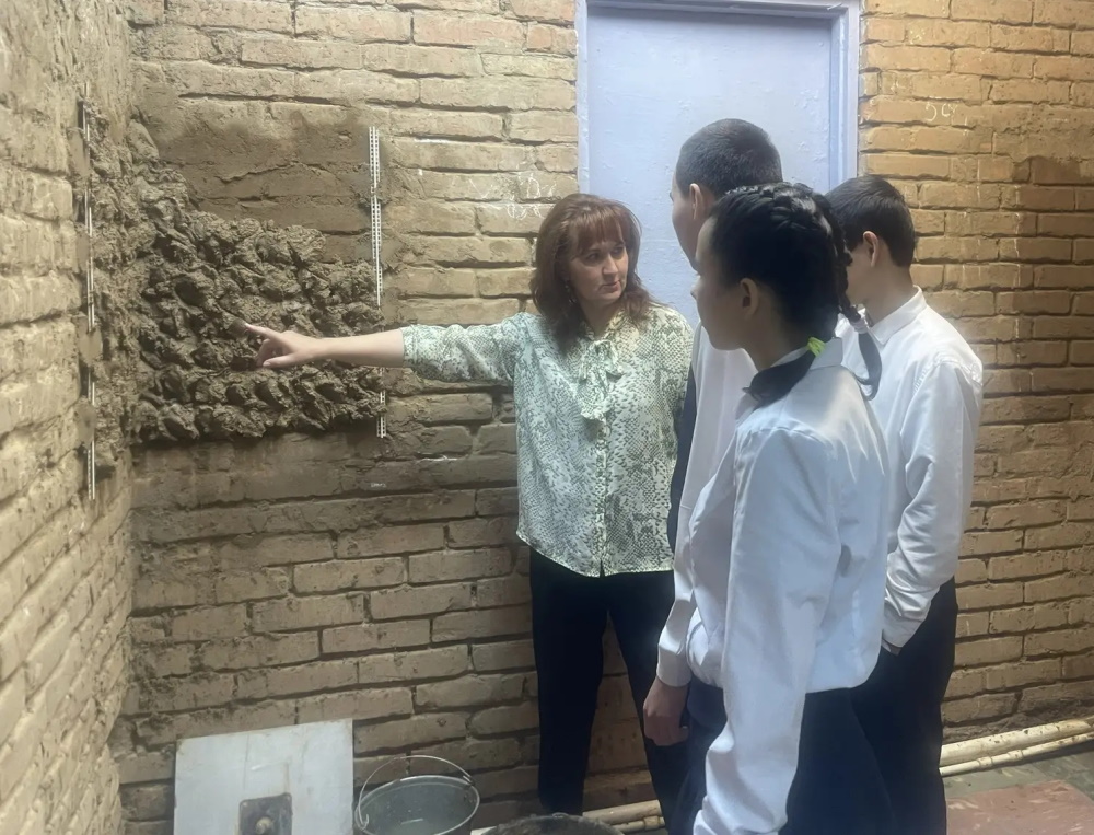 Мастер производственного обучения Венера Гаднанова и первокурсники, осваивающие профессию штукатура, познакомили гостей с технологическим процессом устройства простой, улучшенной и высококачественной штукатурки по маякам. Они продемонстрировали рабочие приемы нанесения штукатурного намета на подготовленную камневидную поверхность, разравнивание и затирку, комплекты рабочих инструментов, приспособления и инвентарь, способы их применения, а также приготовили штукатурный раствор нужной консистенции и провели проверку качества выполненной работы.