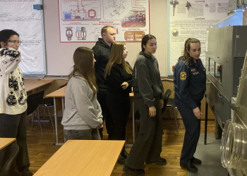 Экскурсия началась с посещения лаборатории испытаний веществ и материалов. Молодым людям объяснили, как проводят исследования по обнаружению и идентификации горючих жидкостей с места пожара, а также рассказали о показателях пожарной опасности строительных материалов, таких как горючесть, воспламеняемость, способность распространения пламени, дымообразующая способность и токсичность продуктов горения.