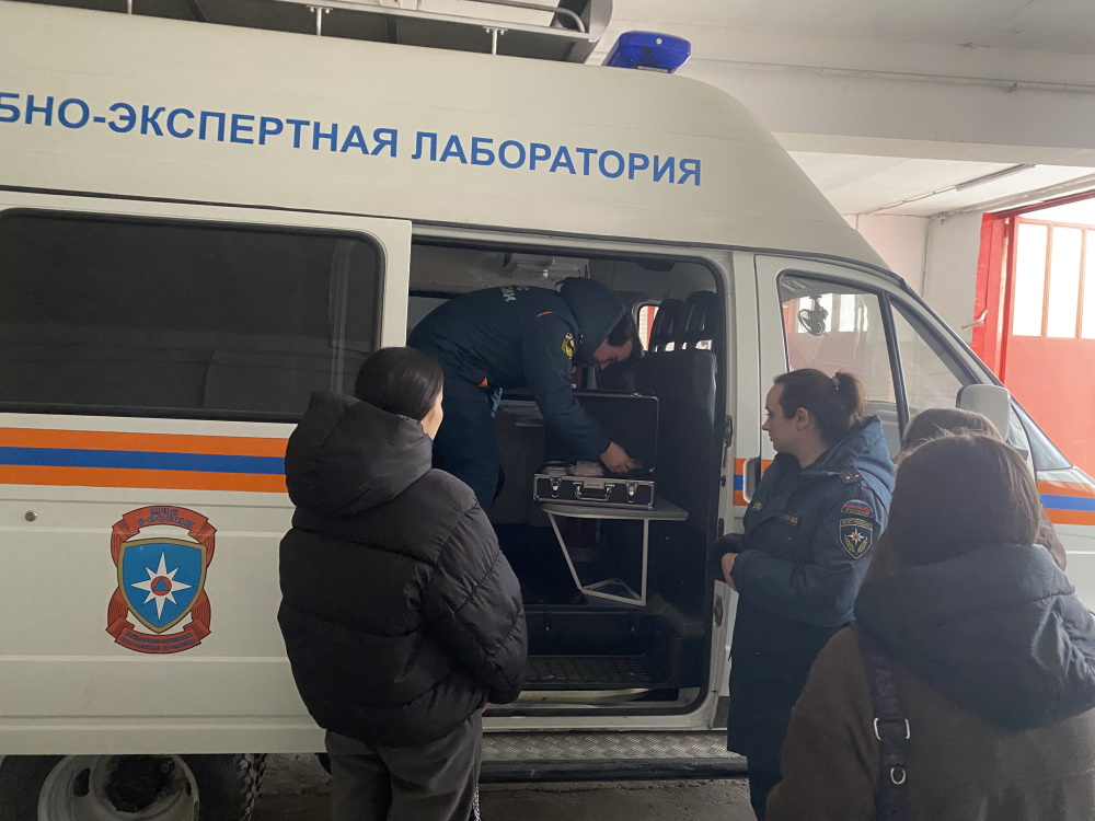 Экскурсия продолжилась в автолаборатории. Там студенты познакомились с пожарно-техническим оборудованием, предназначенным для определения места возникновения пожара.