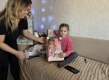 Сергей Петрович лично поздравил ребят из двух семей с наступающим праздником и вручил им именно те подарки, которые они загадали, разместив свои записки на елке.