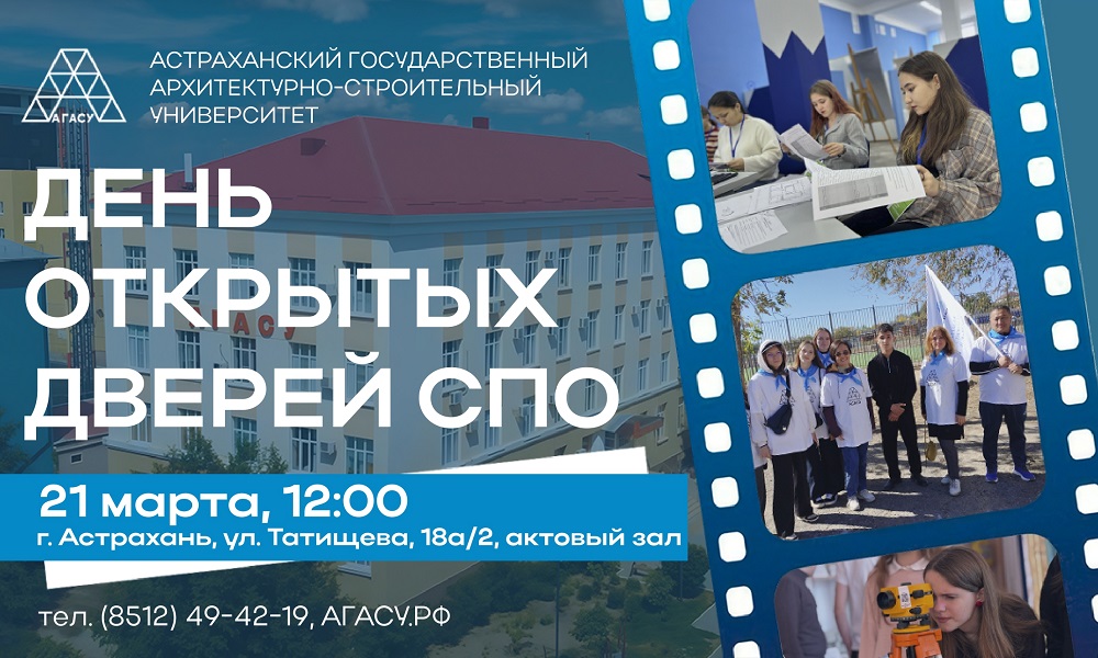 Колледж строительства и экономики и колледж жилищно-коммунального хозяйства АГАСУ приглашают учащихся 8–11 классов, их родителей и классных руководителей на день открытых дверей, который пройдет 21 марта 2026 г. в 12:00.