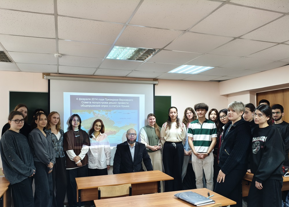 Так, 16 марта 2026 г. во время лекции-дискуссии старший преподаватель Рамиль Ишмухамбетов рассказал студентам о многовековой истории Крыма, проследив его связь с Россией со времен Екатерины II. Особое внимание было уделено событиям марта 2014 г., когда после смены власти на Украине Крым вернулся в состав Российской Федерации по итогам референдума. Лектор подчеркнул убедительные результаты голосования: подавляющее большинство жителей Крыма (96,77 %) и Севастополя (95,6 %) выразили желание воссоединиться с Россией.