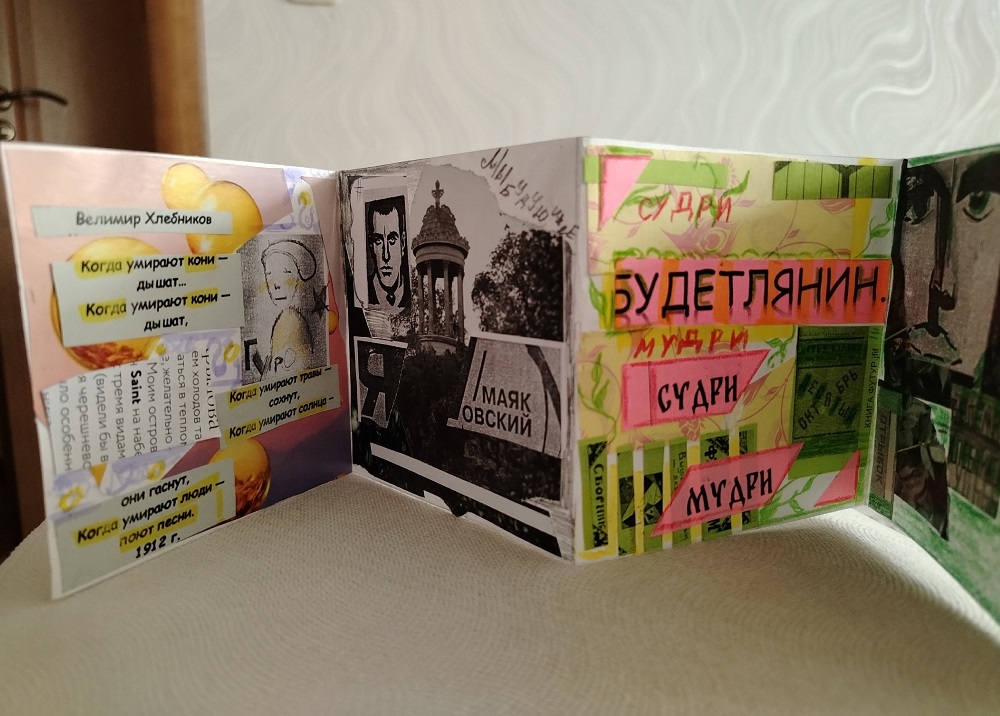 После знакомства с данным феноменом студенты приступили к созданию книжек-раскладушек с портретами поэтов, текстами манифестов, стихотворными строками, рисунками.