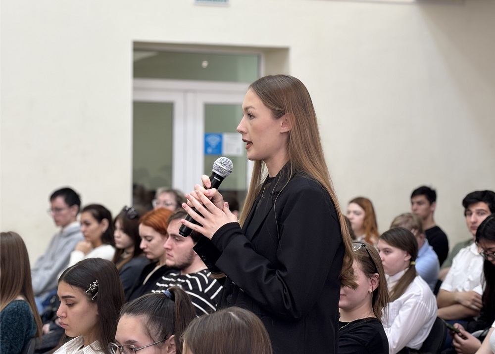 В ходе диалога первый заместитель руководителя администрации губернатора рассказал о тренингах по социальной архитектуре для студентов, а также ответил на вопросы о том, что для него стало ключевым моментом при выборе внутренней политики в качестве сферы профессиональной деятельности, почему стоит остаться жить и строить карьеру в Астрахани. В завершение гость дал напутствие молодым людям заботиться о собственной дисциплине, которая поможет им достигать любых высот.