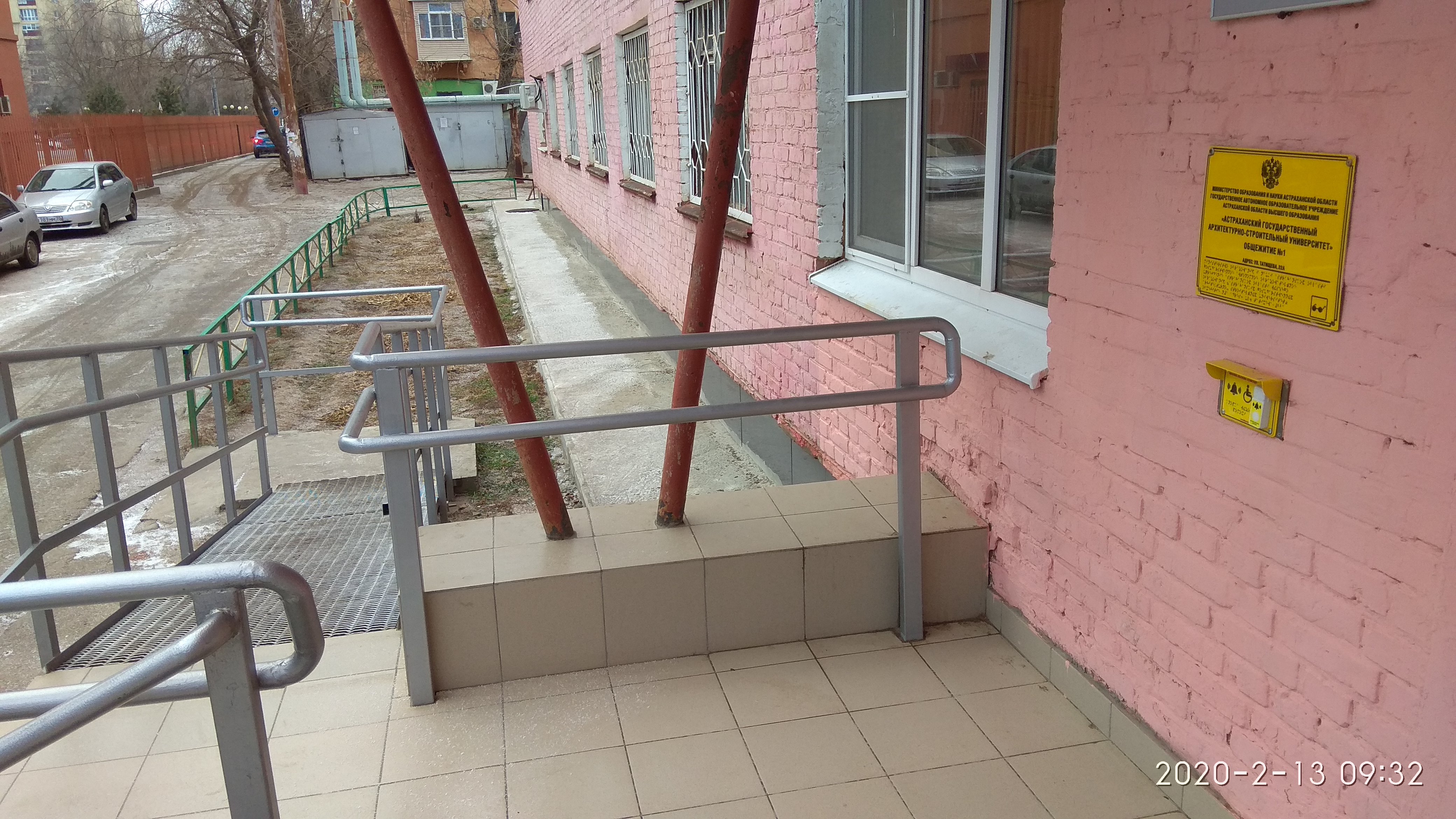 В корпусе, расположенном по адресу: г. Астрахань, ул. Татищева, 18б, создана следующая инфраструктура по обеспечению безбарьерного доступа инвалидов различных категорий, групп и заболеваний: