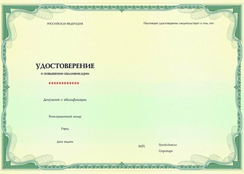 Документ по окончании обучения: удостоверение о повышении квалификации.